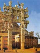大力提倡佛教的孔雀王朝在公元前三世纪中叶几乎统一了整个印度,国力强大,经济繁荣,这时期的佛教建筑物主要是埋葬佛陀或圣徒骸骨的窣堵波(STUPA)和信徒们苦修的僧院。