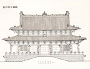圣母殿始建于北宋天圣间(公元1023年—1031年),崇宁元年(公元1102年)重修。正面朝东,面阔七间,进深六间(实际是殿身面阔五间、进深四间加副阶周匝)。重檐九脊殿顶。平面中减去殿身的前檐柱,使前廊深达二间;内柱除前金柱外全部不用。