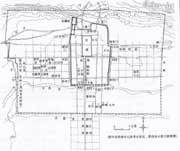 城市的总体布局,宫城位于京城偏北,京城居于外郭的中轴线上。官署、太庙和永宁寺9层木塔,都在宫城前御道两侧。城南还设有灵台、名堂和太学。市场集中在城东的洛阳小市和城西的洛阳大市两处,外国商人则集中在南郭门外四通市。据《洛阳伽蓝记》记载,北魏洛阳居民有10万9000余户,加上皇室、军队、佛寺等,人口当在六七十万以上。城郭之间采用里坊制,里坊的规模是1里300步见方,每里开4座门,每门有里正二人,吏4人,门士8人,管理里中住户,可见当时对居民控制是很严的。