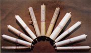 卷轴装就是将单张的印页裱帖在一起,再配以轴芯而成的一种装帧形式。这种装帧形式起于南北朝。