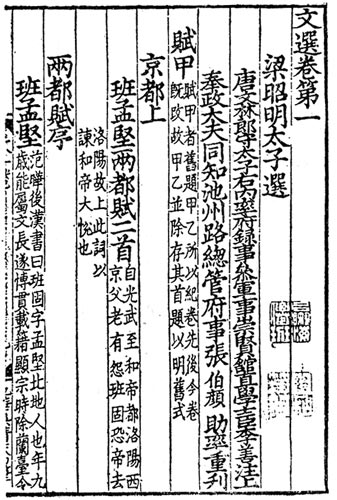 北京书坊汪谅于嘉靖元年刻印的《文选》