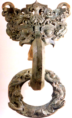 ¡¡¡¡ºÓ±±Ò×ÏØÑà϶¼ÀÏÀÑ̨³öÍÁ¡£Õ½¹úÖÐÍíÆÚ¡£ÆÌÊ×Ïλ·£¬Êθ¡µñÊÞÃæ£¬¼ÓÒÔó´ó¤¡¢·ïÄñ¡£»·ÉÏÊÎ×óÓҶԳƵĸ¡µñó¤ÎÆ¡£ÀÏÀÑ̨ΪÑà϶¼¹¬µîÒŴ棬ÆÌÊ×Ϊ¹¬ÃÅËùÓá£