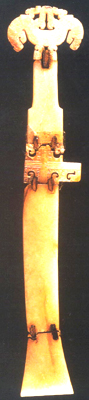 ¡¡¡¡ºþ±±ËæÖÝÀ޹ĶճöÍÁ¡£Õ½¹úÔçÆÚ¡£ÓñÁϳʻư×É«¡£³ö×ÔĹÖ÷È˵ÄÑü¸¹¼ä¡£ÓÉÊס¢¾¥¡¢¸ñ¡¢åé¡¢ÇÊ¡¢Ãصȹ¹¼þ×éºÏ³ÉÒ»Ì×ÍêÕûÓñ½£¾ß¡£ÉÏÊöÓñ¹¹¼þ½Ô×êÓп×ÑÛ£¬ÒÔ½ðÊôË¿ÂÆ¹áÁ¬£¬½£Ê×³Ê±âÆ½Ì壬ïεñ×÷СÐÍÓñÅå×´£¬Á½¶Ë×Á³ÉÏòÏ»ؾíµÄÁúÊ×£¬Ô²Ä¿£¬Õſڣ¬ÁúµÄÇûÌå×÷»¡ÐξíÇú¡£Á½Ç°×ãÖ±É죬»¯×÷¶Ô³ÆµÄÁúÍ·£¬Á½ºó×ãµñ×Á³Éһ˫Ïà¶ÔµÄ·ïÊ×£¬Ô²¾¦£¬´¹×Ä£¬Æä¸ß¹Ú³Ê»¡ÐÎÁ¬½Ó£¬±íÃæ¿ÌÁâÐÎϸÏß·½¸ñÎÆºÍϸÃÜÒõÏßÎÆ¡£ÉÏÊöË«ÁúÇûÌåµÄϱߣ¬µñ×ÁÏ౳˫·ï£¬·ïÊ×ÏòÍ⣬ÓëÁúÉíÁ¬Ì壬Æä¼ä×Áïγ¤·½ÐεĿ×ÑÛÓë½£¾¥¶¥¶ËµÄ·½¿×¶ÔÓ¦£¬²¢ÒÔ½ðÊôÎïÏà¹áÁ¬¡£Õâ¼þ½£Ê×Á½ÃæÒõ¿Ì³öÁúµÄϸ²¿£¬²¢ÒÔÒõ¿Ìµ¥Ïß»òË«Ïß¹´ÔÆÎÆ¡¢ÁâÐθñµÈ×÷ΪװÊΣ¬Í¬Ê±ÅäÒÔïοգ¬ÔìÐͼ«ÆäÉú¶¯¡£åéλÓÚ¸ñµÄÒ»Ãæ£¬×÷¹´ÐΣ¬Óë¸ñͬÊôÒ»½Ú£¬²¢²ÉÓÃͬһ¿éÓñ×Áµñ¶ø³É¡£Ò»ÃæÒÔÊ®×ÖÐÎÏßÌõ½«Æä±íÃæ½ç×÷ËÄÇø£¬ÒÔÒõÏß¹´ÔÆÎÆ×°ÊÎÆä¼ä¡£½£¸ñµÄÉϲ¿ïζþ¿×£¬Óë½£»ù϶˵ÄÁ½¿×¶ÔÓ¦£¬²¢ÒÔ½ðÊôË¿Ïà¹áÁ¬£»½£åéÏ·½ÓÐÁ½¿×£¬Óë½£ÇÊÉ϶˵ÄÁ½¿×¶ÔÓ¦£¬ÒàÒÔ½ðÊôË¿Ïà¹áÁ¬¡£½£Çʺͽ£ÃؽÔËØÃæ£¬ÆäÁ¬½Ó·½·¨Í¬ÉÏ¡£