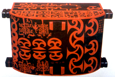 黑漆朱绘回旋纹几  彩绘透雕漆座屏