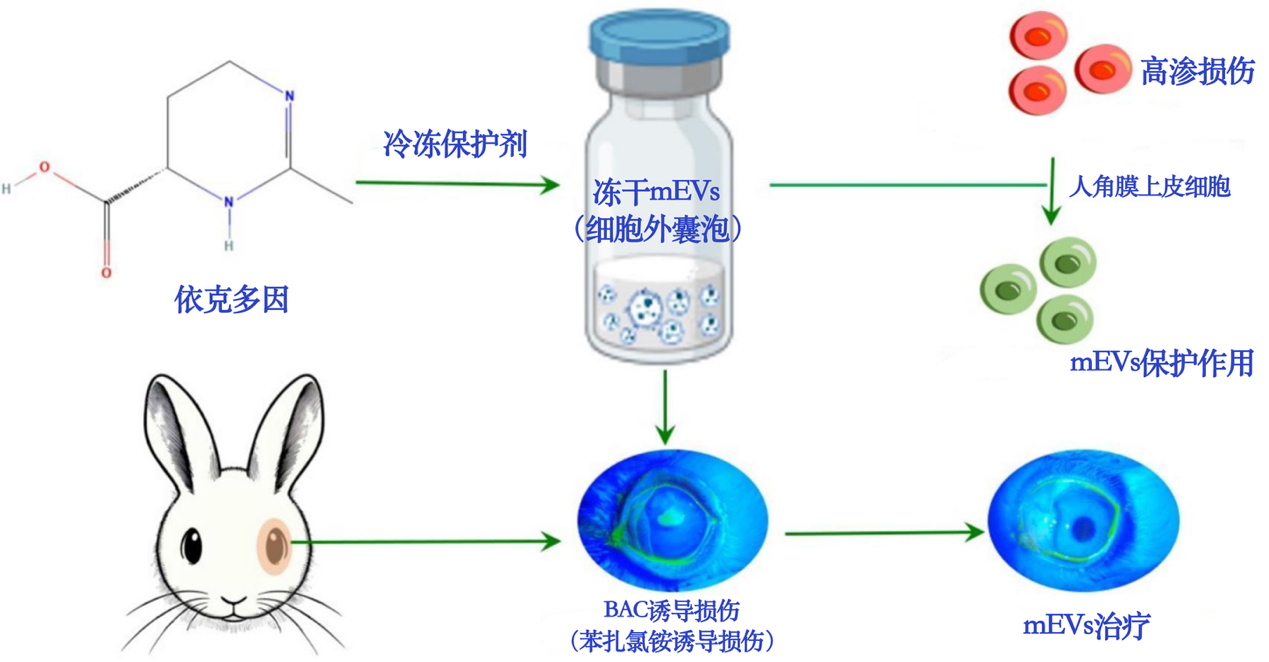 有了稳定的储存方法,下一步就是验证治疗效果。研究人员首先在体外细胞实验中测试,他们将人角膜上皮细胞暴露在高渗环境中——这种环境会模拟干眼症时眼表细胞面临的压力。结果发现,冻干后的囊泡依然能够有效?;ふ庑┫赴?,就像给它们披上一层隐形的防护铠甲。