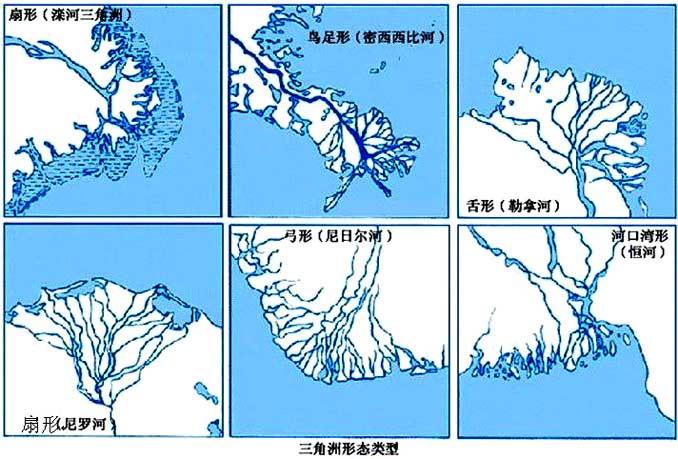 ºÓ¿Ú¶ÎµÄÉÈ×´³å»ýƽԭ¡£ºÓÁ÷È뺣ʱ£¬ÒòÁ÷ËÙ¼õµÍ£¬ËùЮ´øµÄ´óÁ¿Äàɳ£¬ÔÚºÓ¿Ú¶ÎÓÙ»ýÑÓÉ죬ÌÔì½£¬ºéˮʱÂþÁ÷ÓÙ»ý£¬Öð½¥ÐγÉÉÈÃæ×´µÄ¶Ñ»ýÌå¡£»ÆºÓºÓ¿ÚÈý½ÇÖÞ£¬¾ÍÊÇÐí¶à²»Í¬Ê±ÆÚÐγɵijå»ýÉÈ£¬¾­¹ýÈô¸Éʱ¶Î£¬È뺣ºÓ¿Ú²»¶ÏÓÙ»ý¡¢ÑÓÉì¡¢¸ÄµÀ£¬Ê¹³å»ýÉÈÃæ»ý²»¶ÏÀ©´ó£¬º£°¶Ïß²»¶ÏÏòÇ°ÍÆ½ø£¬Í¬Ê±ÔÚ²»×ߺӵÄÇøÓò£¬º£°¶ÏßÓÖÃ÷ÏÔÊ´ÍË£¬ ÕâÖÖÑÓÉìºÍÊ´Í˽»Ìæ½øÐУ¬ÐγÉÁËÏÖ½ñµÄ»ÆºÓ¿ÚÈý½ÇÖÞ¡£1938ÄêǰÒÔ¿ÑÀûÏØÄþº£Îª¶¥µã£¬±±Æðͽº§ºÓ¿Ú£¬ÄÏÖÁÖ§Âö¹µ¿ÚµÄÉÈÐεØÇø£¬Ãæ»ýÔ¼6000ƽ·½¹«Àº£°¶Ïß³¤180Ó๫Àï¡£³Æ¡°½ü´ú»ÆºÓÈý½ÇÖÞ¡±¡£1949Äêºó£¬ÓÉÓÚÈ˹¤¿ØÖÆÈ뺣Á÷·£¬¶¥µãÏÂÒÆÖÁ¿ÑÀûÏØÓæÍݸ½½ü£¬±±Æð䬺Ó£¬ÄÏÖÁËδºÈÙ¹µ£¬ÉÈÐÎÃæ»ýÔ¼2600ƽ·½¹«À³Æ¡°ÏÖ´ú»ÆºÓÈý½ÇÖÞ¡±¡£