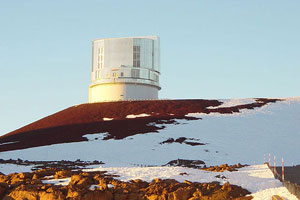 备注:这是一台8.2米口径的光学/红外望远镜。它有三个特点:一是镜面薄,通过主动光学和自适应光学获得高成象质量;二是可实现高精度跟踪;三是采用圆柱形观测室,自动控制温度和通风,使热湍流的排除达到最佳条件。此望远镜采用Serrurier桁架,可使主镜框与副镜框在移动中保持平行。