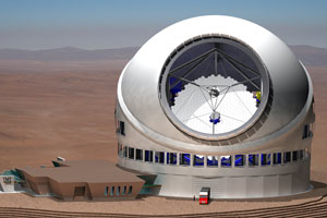 备注:截止2009年3月,TMT项目已经完成了初步设计阶段,并已在美国夏威夷开始初期的基础建设。TMT有效通光口径为30米,结构设计上采用了双耐氏焦点,Ritchey-Chrétien光学系统。2009年11月,中国科学院国家天文台及其相关机构以观察员的身份加入国际三十米望远镜(TMT)项目。