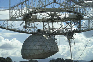 备注:阿雷西博射电望远镜(Arecibo) 是世界上单个体积最大的射电望远镜,口径305米,天线是固定的,观测波长范围从6米到3厘米。1974年泰勒和赫尔斯在这里发现了第一个射电脉冲双星系统PSR1913 + 16,并于1993年荣获诺贝尔物理学奖,成为阿雷西博的骄傲。