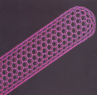 最近,科学家正在致力于一种新型纳米材料--碳纳米管的研究,这是一种非常奇特的材料,它是石墨中一层或若干层碳原子卷曲而成的笼状"纤维",内部是空的,外部直径只有几到几十纳米。这样的材料很轻,但很结实。它的密度是钢的1/6,而强度却是钢的100倍。用这样轻而柔软、又非常结实的材料做防弹背心是最好不过的了。如果用碳纳米管做绳索,是唯一可以从月球挂到地球表面,而不被自身重量所拉断的绳索。如果用它做成地球-月球乘人的电梯,人们在月球定居就很容易了。
