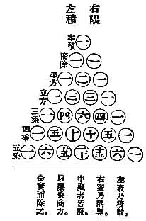 ʮһÊÀ¼ÍÖÐÒ¶£¬Ëγ¯µÄ¡¶»ÆµÛ¾ÅÕÂËãÊõϸ²Ý¡·ÖУ¬´´ÔìÁË¿ªÈÎÒâ¸ß´ÎÃݵġ°Ôö³Ë¿ª·½·¨¡±£¬Áгö¶þÏîʽ¶¨ÀíϵÊý±í£¬ÕâÊÇÏÖ´ú¡°×éºÏÊýѧ¡±µÄÔçÆÚ·¢ÏÖ¡£ºóÈËËù³ÆµÄ¡°Ñî»ÔÈý½Ç¡±¼´Ö¸´Ë·¨(Öйú¼ÖÏÜ)¡£