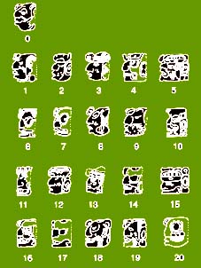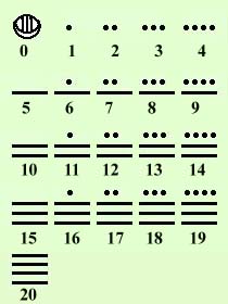 ÂêÑÅÊý×ÖÓÐÁ½ÖÖÊéд·½·¨£¬Ò»ÖÖÊÇÓúáÌõ¼ÓÔ²µãµÄ°ì·¨£¬Ò»¸öÔ²µã´ú±í1£¬Ò»¸öºáÌõ´ú±í5£¬±´¿ÇÐÎÏó·ûºÅ±íʾ¡°0¡± ¼û×óÏÂͼ¡£²¢ÇÒÕâЩÊý×Ö¿ÉÒÔºáд£¬Ò²¿ÉÒÔÊúд¡£ÁíÍâÒ»ÖÖÊÇÓÃ20¸öÍ·ÏñÀ´±íʾ0¡ª¡ª19Õâ¸ö20¸öÊý×Ö¡£¾Ý˵ÕâЩͷÏñÊÇÂêÑÅÎÄ»¯Öеĸ÷ÖÖÉñ£¬µ«ÊÇÈËÃÇûÓÐÕÒµ½¸ü¶àµÄ¾ßÌåÐÅÏ¢¡£