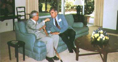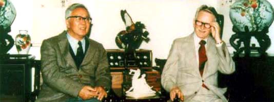 1980年华罗庚与美国数学家N.Jacobson在耶鲁大学留影。 |