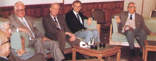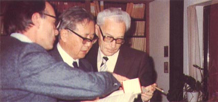 1979年华罗庚与德国数学会会长希尔茨布鲁赫、数学家艾柯曼在一起。 |