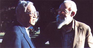 华罗庚与他的老朋友著名数学家徐贤修在一起。 |