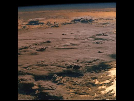 在地球强大引力的作用下,大量气体聚集在地球周围,形成数千千米的大气层。探空火箭在3000千米高度仍然发现有稀薄的大气,科学家认为,大气层一直可以延续到距地面6400千米左右。大气中氮占78%,氧占21%,氩占0.93%,二氧化碳占0.03%,氖占0.0018%,此外还有水气和尘埃。由于有了大气,才使射进来的阳光遇到大气分子后偏高原来方向而产生散射。对于低层的分子来说,主要是散射蓝色光,从而使天空成为蓝色。有了大气层,在昼夜交替的过程中,我们才能欣赏到晨光明霞、黄昏夕照的壮丽景色。