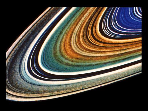 光环的颜色远看是红棕色,其实每层都稍有不同,C环是蓝色,B环内层为橙色,外层为绿色,A环为紫色,卡西尼缝是蓝色的。