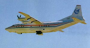 运-8是中国陕西飞机制造公司研制的四发涡轮螺桨中程多用途运输机,具有空投、空降、空运、救生及海上作业等多种用途。1969年开始由西安飞机工业公司设计,1974年12月25日01号机首次试飞成功,之后西安飞机工业公司将02、03号两架飞机散装件以及技术资料和专用部分工艺装备等转至陕西飞机制造公司继续试制。02、03号飞机分别在1975年12月和1977年1月试飞成功,1980年1月国家批准设计定型后转入小批量生产。