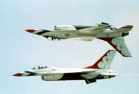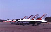 ¡¡¡¡¡°À×Äñ¡±·ÉÐбíÑݶÓÒ»¹²Ê¹ÓùýÁùÖÖÐͺŵıíÑÝ·É»ú¡£³ÉÁ¢³õÆÚʹÓõıíÑÝ»úÊÇF-84¡°À×µçÅçÆø¡±£¨Thunderjet£©Ê½·É»ú¡£1956Äê6Ô»»×°ÎªµÚÒ»´ú³¬ÒôËÙÕ½¶·»úF-100¡°³¬Ååµ¶¡±£¨Super Sabre£©Ê½£¬³ÉΪÊÀ½çÉϵÚÒ»Ö§³¬ÒôËÙ·ÉÐбíÑݶӣ¬´ó±¾ÓªÒ²´Ó¬¿¨ÒÆÖÁÃÀ¹ú×î´óµÄ¿Õ¾ü»ùµØÖ®Ò»µÄÄÚ»ª´ïÖݵÄÄÚÀû˹»ùµØ¡£1964Äê³õ£¬»»×°ÎªF-105¡°À×¹«¡±£¨Thunderchief£©Ê½Õ½¶·ºäÕ¨»ú£¬ÓÉÓÚ¼¼ÊõÉϵÄȱÏÝ£¬½ö±íÑÝÁË6³¡£¬¾ÍֹͣʹÓÃÁË£¬²»µÃ²»ÓÖÖØÐÂʹÓÃF-100¡£ 1969Ä꣬»»×°ÎªÖøÃûµÄF-4¡°¹í¹Ö¡±£¨Phantom£©Ê½Á½±¶ÒôËÙÖØÐÍÕ½¶·»ú£¬¸ÃÐÍ»ú×÷Õ½ÐÔÄÜÉõ¼Ñ£¬ÔÚÔ½Õ½ÖÐÃûÉùÏÔºÕ£¬µ«ÔëÒô½Ï´ó£»²»Ì«ÊʺÏÓÚ±íÑÝ£¬ËùÒÔÔÚ1973Äê11Ô±»T-38A¡°ÇÝצ¡±£¨Talon£©¸ßÐÔÄܽÌÁ·»úËùÈ¡´ú£¬¸Ã»úµÄÒ»´óÌØÉ«ÊÇÔëÒôС¡£1976Äê5ÔÂ5ÈÕ£¬ÔÚÇì×£ÃÀ¹ú½¨¹ú200ÖÜÄêµÄÇìµä»î¶¯ÖУ¬¡°À×Äñ¡±·ÉÐбíÑݶÓÍê³ÉÁËËüµÄµÚ2000³¡Õýʽ·ÉÐбíÑÝ¡£1982Ä꣬¡°À×Äñ¡±·ÉÐбíÑݶӻ»×°ÁËÊÀ½çÉÏ×îÏȽøµÄF-16¡°Õ½öÀ¡±£¨Fighting Falcon£©Ê½Õ½¶·»ú£¬Ò»Ö±Ê¹ÓÃÖÁ½ñ¡£Ä¿Ç°£¬¡°À×Äñ¡±·ÉÐбíÑݶӱê ×¼±àÖÆÈËԱΪ130Ãû£¬ÆäÖзÉÐÐÔ±10Ãû£¬µØÇںͱ£ÕÏÈËÔ±120Ãû¡£±àÖÆ±íÑÝ·É»ú15¼Ü£¬³ö·Ã±íÑÝʱ£¬»¹¿ÉµÃµ½Á½¼ÜC-141´óÐÍÔËÊä»úºÍKC-10¼ÓÓÍ»úµÄ±£ÕÏ¡£