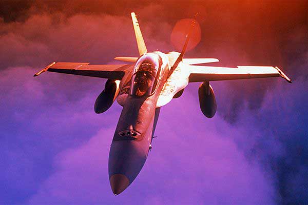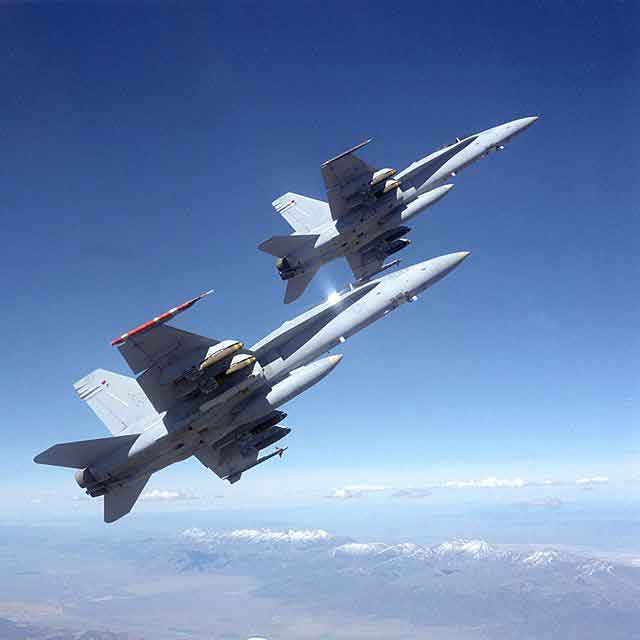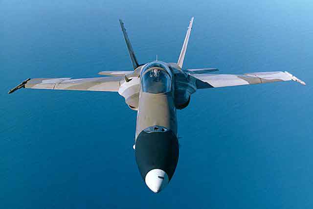 F/A—18是美国麦克唐纳·道格拉斯公司(现并入美国波音公司)为美国海军研制的舰载单座双发超音速多用途战斗/攻击机,主要用于舰队防空,也可用于对面攻击。1974年美国海军提出研制低成本的轻型多任务战斗机的VFAX计划,1975年5月在YF—16和YF—17个候选方案中,美海军选中YF—17飞机,在此基础上进行重新设计,由于要求该机既可用于空战又能进行对地攻击,因此编号为F/A—18。1978年11月18日第一架F/A-18A/B原型机首飞,1980年5月开始交付美海军。该机采用双发、双垂尾、带有边条的小后掠悬臂式中单翼正常式布局,机身为半硬壳结构,主要采用铝台金,部分结构采用石墨环氧树脂材料。早期型安装2台通用电气公司的F404—GE—400低涵道比涡扇发动机,单台加力推力71.2干牛。1992年后换装F404—GE—402增强性能发动机,加力推力为78.3干牛。