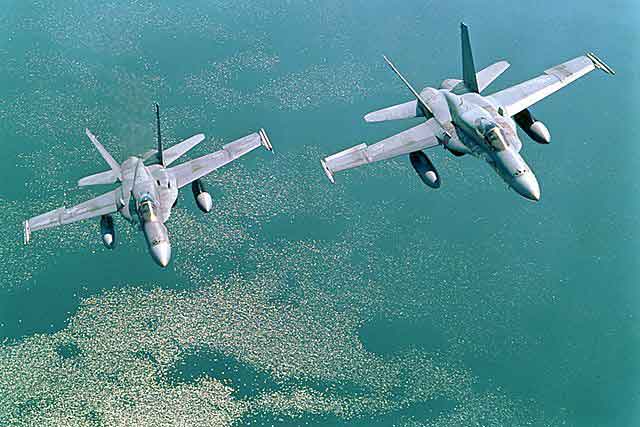 海湾战争期间,有148架F/A—18参战,主要执行对地攻击任务,曾击落过伊拉克的米格—29战斗机。