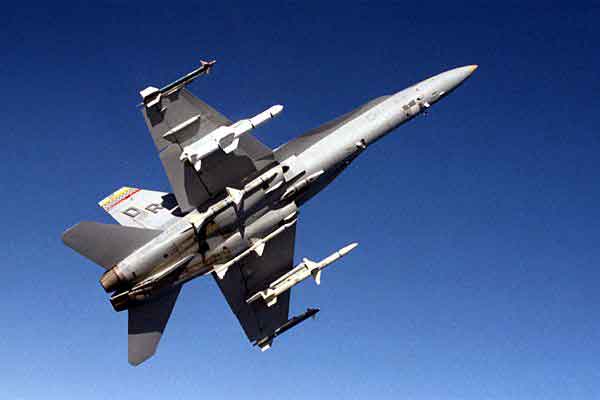 武器装备 机头安装1门20毫米M61—A1六管机饱,备弹570发。全机有9个外挂点,两个翼尖挂架各挂一枚AIM—9L空空导弹,两个外翼挂架可挂AIM—7、AIM—120和AIM—9空空导弹及各种空对面武器,两个内翼挂架可挂副油箱或空对地武器,发动机短舱处可挂导弹或AN-AAS—38前视红外跟踪吊舱,机身下中线处可挂副油箱或武器等。