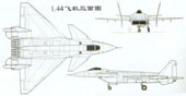 I.44是俄罗斯下一代战斗机的原型机,于1999年1月首次公诸于世,它是米高扬设计局研制的与苏霍依设计局的S-37竞争的机种。I.44采用鲨鱼头,鸭式布局。大尺寸全动鸭翼带有锯齿,能产生拖过主翼和机身的脱体涡以改善升阻特性;主翼为三角形中单翼,面积很大,机翼根部向后延伸至喷口后方并设有一对气动舵面。垂尾外倾,延伸至机翼平面以下形成腹鳍。I.44采用两台带推力矢量喷管的留里卡AL-41F发动机,单台推力196千牛。楔形进气道位于机头下方,S形进气道减少了雷达反射面积,有利于隐身。(由于资料保密,没有详细的性能数据)