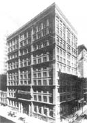 框架结构最初在美国得到发展,其主要特点是以生铁框架代替承重墙,外墙不再担负承重的使命,从而使外墙立面得到了解放。1858--1868年建造的巴黎圣日内维夫图书馆,是初期生铁框架形式的代表。此外还有:英国利兹货币交易所、伦敦老火车站、米兰埃曼尔美术馆、利物浦议院、伦敦老天鹅院、耶鲁大学法尔南厅等。美国1850-1880年间“生铁时代”建造的大量商店、仓库和政府大厦多应用生铁构件门面或框架,如圣路易斯市的河岸上就聚集有500座以上这种生铁结构的建筑,在立面上以生铁梁柱纤细的比例代替了古典建筑沉重稳定的印象,但还未完全摆脱古典形式的羁绊。在新结构技术的条件下,建筑在层数和高度上都出现了巨大的突破,第一座依照现代钢框架结构原理建造起来的高层建筑是芝加哥家庭保险公司大厦(1883-1885,William Le Baron Jenney),共十层,它的外形仍然保持着古典的比例。