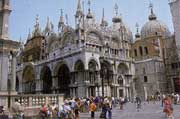 二、中期:(7-12世纪),由于外敌相继入侵,国土缩小,建筑减少,规模也大不如前。其特点是占地少而向高发展,中央大穹隆没有了,改为几个小穹隆群,并着重于装饰,如威尼斯的圣马可教堂。