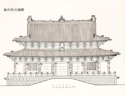 晋祠圣母殿立面图