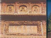 台座和塔上使用的雕刻题材有:四大天王、金刚杵、罗汉、狮子、孔雀、梵文、八宝(轮、螺、伞、盖、花、罐、鱼、长——即绳)、象、马、卷草等,种类虽多,华丽而不零乱,是其成功之处。