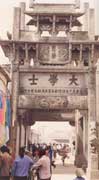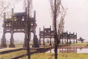 在棠樾村东端甬道上,井然有序志地屹立着七座牌坊,拨地而起,古朴典雅,蔚为壮观,自然地构成牌坊群,使参观者叹为观止。