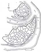 在我国多江河山丘的地区,地形复杂多变,城市布局多样,道路系统也往往成不规则状。依山筑城,则主要街道沿等高线展开;沿江建市,则往往形成带状城市。雾都重庆即是极有特色的“山城”。