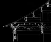 斗拱在中国木构架建筑的发展过程中起过重要作用,它的演变可以看作是中国传统木构架建筑形制演变的重要标志,也是鉴别中国古代木构架建筑年代的一个重要依据。斗拱的演变大体可分三个阶段。第一阶段为西周至南北朝。西周铜器拱令簋上已有大斗的形象,战国中山国墓出土的铜方案上有斗和45°斜置拱的形象。汉代的石阙、明器、画像石和画像砖上也有大量斗拱的形象。从汉高颐阙和四川牧马山、山东高唐出土的汉明器陶楼上可以看出,柱顶有斗拱承托檩、梁或楼层地面枋,挑梁外端的斗拱承托檐檩,各个斗拱间互不相连。汉代以后开始在柱间用斗拱,最初是一种在现代称为人字拱的斗拱,即在额枋上立一个叉手,上置一斗,承托檐檩。至初唐,从西安慈恩寺塔门楣石刻《说法图》上还可看到佛殿柱间仍用人字拱。第二阶段为唐代至元代。这个时期斗拱的主要特点在于柱头斗拱所承托的梁多插入斗拱中,使斗拱和梁架拉结在一起,顺屋身左右横出的拱也和井干状的柱头方(即枋)交搭在一起。建筑的一圈柱头枋和同它成直角的正、侧两面的梁交织成一个分为若干井字格的水平框架,斗拱成为各交叉处的加强节点。这时斗拱已不再是孤立的支承架或挑檐的构件,而是水平框架不可分的一部分。这个水平框架现在称为“铺作层”,用于殿堂型构架柱网之上,对保持木构架的整体性起关键作用。现存唐代五台山佛光寺大殿的斗拱,就是这种做法的典型实例。宋《营造法式》中所载各种殿堂构架的斗拱与梁架结合,已不如唐代紧密,但仍类似。第三阶段为明代至清代。自明代开始,柱头间使用大、小额枋和随梁枋,斗拱的尺度不断缩小,间距加密。清式建筑的梁不再像宋式那样穿插在斗拱中,而是压在斗拱最上一跳之上,直接承挑檐桁。因此,斗拱发展到明清以后便不再起维持构架整体性和增加出檐的作用。它的用料和尺度比宋式大为缩小,