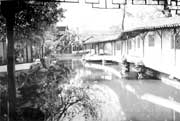 复廊。在双面空廊的中间夹一道墙,就成了复廊,又称“里外廊”。因为廊内分成两条走道,所以廊的跨度大些。中间墙上开有各种式样的漏窗,从廊的一边透过漏窗可以看到廊的另一边景色,一般设置两边景物各不相同的园林空间。如苏州沧浪亭的复廊就是一例,它妙在借景,把园内的山和园外的水通过复廊互相引借,使山、水、建筑构成整体。