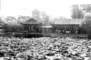 北京颐和园内谐趣园中的“洗秋”和“饮绿”则是位于曲尺形水池的转角处,以短廊相接的两座水榭,相互陪衬,连成整体,形象小巧玲珑,与水景配合得宜。
