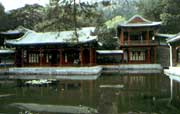 内垣接近山麓,为园内主要建筑荟萃之地,各种类型的建筑物如宫殿、梵刹、厅堂、轩榭、园林庭院等,都能依山就势,成为天然风景的点缀。外垣占地最广,是静宜园的高山区,建筑物很少,以山林景观为主调;这里地势开阔而高峻,可对园内外的景色一览无遗。外垣的“西山晴雪”,为著名的燕京八景之一。别垣内有见心斋和昭庙两处较大的建筑群。园中之园见心斋始建于明代嘉靖年间(1522-1566),庭院内以曲廊环抱半圆形水池,池西有三开间的轩榭,即见心斋。斋后山石嶙峋,厅堂依山而建,松柏交翠,环境幽雅。昭庙是一所大型佛寺,全名“宗镜大昭之庙”,乾隆四十五年(1780)为纪念班禅六世来京朝觐而修建的,兼有汉族和藏族的建筑风格。庙后矗立着一座造型秀美、色彩华丽的七层琉璃砖塔。