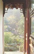 池水形状狭长,自北而南,有水阁跨于水上。阁内有岁寒三友落地罩,形制大,琢刻精,有“罩王”之称。西有长廊,曲折通向东南隅的听橹楼,登楼可观园外景色。