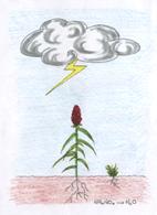 几千万年前, 地球的主宰是恐龙。为什麽突然灭绝了, 众说纷纭。一种说法是, 一天, 一颗大的陨星撞上了地球, 沉埃迷漫天空达数年之久, 太阳光的相当部分被遮盖, 照不到地球表面, 因此气候变得寒冷和阴暗, 树木死了, 恐龙找不到充足的食物, 养不活庞大的身驱, 物种因此灭绝。另一种说法是, 一天, 一颗长长的慧星撞上了地球, 细小的慧星雨与大气不断摩擦放电, 大气中的氮气与氧气化合, 形成酸性的NOx , 形成酸雨, 森林衰退, 恐龙最终被饿死。应该说, 这种NOx 是天然源排放。