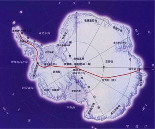 南极洲(图中红线为1990年横穿南极路线)