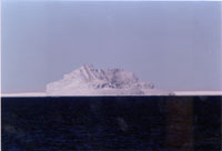 早晨八点,考察船行驶在(60°01′S,84°17′E)处,风速常在10米/秒左右,船较平稳。在指挥台上,我惊喜地看到船的右舷约十公里处以外有一大冰山,估计面积在一平方公里以上,形如我国的长城,连拍几张,留作纪念。这是我一生中首次见到大冰山。
