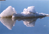 下午,我躺在床上,想起今天上午失掉了拍照海豹的机会,非常遗憾。立即翻身起床,带着相机,再度向海峡方向走去。我带上两架像机,分别装上正片和负片,并带上小型录音机,独自漫步在海峡附近,等待着海豹出现。海豹没有露面。我打开录音机,有时录下潺潺的流水声,有时录下自己的歌声;有时拍下南极海鸥,有时拍下冰山的倒影,有时拍下奇状的南极风化石,有时也挑拣漂亮的南极石作纪念……。尽管忙碌着,但我的耳朵仍专心倾听着海面上的动静,眼睛的余光仍扫视着海峡的水面,等候着海豹出现。冰山的倒影真美,这是珠峰北坡冰塔林所不具备的。海面上的小冰山固然美,但若把它与它的倒影组合起来,那更是锦上添花,奇幻无比。天气分外暖和,静静无风,冰山的倒影更显清晰、美丽。我贪婪地拍着,一张又一张,用长变焦镜头为冰山和它们的倒影拍特写。摄入镜头的,有的似雪豹戏水,有的似飞鱼出水,有的似冰柱进海底……。一头海豹竟在我专注地拍摄冰山时溜去。我又失去了一次拍摄海豹的良机。