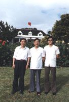 下午三点半,老柳开车把我们接到大使馆。陈瑞大使等会见了我们,热情而又亲切。我们简单汇报了有关考察情况后,大使见我们长长的头发,知道我们几个月没有理发,马上通知使馆理发师为我们理发。一照镜子,我们都觉得自己精神而又年轻了。老柳是使馆办公室主任,四川重庆市人,我的老乡,他热情地带我们参观大使馆,送了两大串使馆种的香蕉。使馆同志们热情接待,合影留念,真有点回到家的感觉。