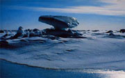 海冰南界不固定,随着水文气象条件的变化,往往能变动几百公里。在风和海流的作用下,浮冰可叠积并形成巨大的浮冰山。通常所见的绝大多数冰山指的是那些从陆缘冰架或大陆冰盖崩落下来的直径大于5米的巨大冰体。大型的桌状冰山的厚度一般可达200~300米,平均寿命长达4年。如果运气好,还可以看到特别巨大的冰山,长数十公里,像一片白色的陆地横亘在暗灰的海面上。