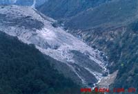 在大峡谷水汽通道北行的当口部位是念青唐古拉山东段北坡,这里发育有卡钦冰川,长达33公里;在帕隆藏布上游的来姑冰川,长达35公里,它们都是我国海洋性温性冰川最长的山谷冰川,冰川末段伸入到亚热带的常绿阔叶林中,最低可以达到海拔2500米左右的地方,构成自然奇观。第四纪中,本区山地发育过多次冰川作用,遗留下完整的古冰川U形谷,特别在大峡谷地区的波堆藏布中上游古冰川作用过的U形谷底部平原上,发育密集的冰碛丘陵,似坟似琢,这是一种原来只出现于大陆冰盖前缘消融平原上的基碛丘陵,今天出现在青藏高原的山谷冰川槽谷底部,是一种新发现的特殊堆积类型分布,它是水汽通道上的特定环境下的古冰川作用堆积遗迹。