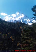 沿山而下,不知不觉中慢慢地景象就变了,四周不再是皑皑白雪,而是漫山遍野的绿。这里是高山灌丛草甸带,在六月初到达这个高度,你会看到各色杜鹃竞相开放,开花时是那样的热情奔放,小叶紫花杜鹃,血红的平卧杜鹃……它们匍匐在地;伴着它们的有垫状方枝柏,高山柳,加上黄花的锦鸡儿等,组成一丛丛垫状的花丛或一个个圆圈状的花环;更有那金黄色的塔状大黄,竟都是亭亭玉立在这绿草铺起的花的海洋里,大黄还是一种退热解毒的中草药用植物,我们渴时常折其嫩枝吸汁。 除了体念高山杜鹃之外,当然还有草甸。这高山亚高山的草甸,是最适于牦牛放牧的夏季牧场。秋季,美丽的草甸依然残存了几分青春时的风姿。龙胆花正当时令,片片龙胆花如兰色玉石雕琢而成;报春花当然已经蕊灭了,它们不声不响地为明年春天的到来作准备呢;而垂头菊则更是低垂着脑袋,象是在沉思追忆刚逝去的灿烂阳光。