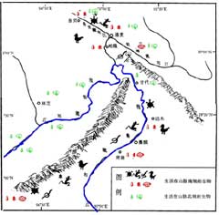 在青藏高原南部,由于高大的喜马拉雅山脉阻挡,其南北两翼的生物分布迥然不同。然而,由于雅鲁藏布大峡谷造就了西藏东南的门户,促进了喜马拉雅山脉南北的生物通过这条通道得到了交流与混合。一方面,在喜马拉雅山脉南翼特有的植被类型和生物种类,经过这条通道分布到山脉北翼的通麦、易贡和帕隆等地。例如,南翼谷地高等植物中的通麦栎、尼泊尔桤木,低等植物中的金顶侧耳、灰钉,动物中的猕猴、黄嘴蓝鹊等;另一方面,山脉北翼的高山松,川滇高山栎等却通过这条通道分布到南翼的甘代、鲁古等地。图6给出了沿这条通道上生物南北交流分布的示意图。