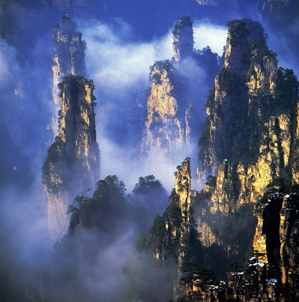 张家界由石英砂岩形成的独特峰林地貌,1992年12月被联合国列入《世界自然遗产名录》,2004年2月被列入世界地质公园。