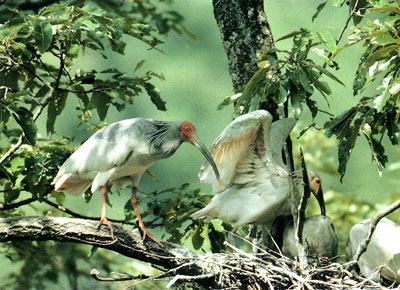 朱鹮是稀世珍禽,上世纪前在中国东部、日本、俄罗斯、朝鲜等地 曾有较广泛的分布,由于环境恶化等因素导致种群数量急剧下降。我国鸟类 学家于1981年5月在陕西省洋县重新发现朱鹮种群,也是世界上仅存的种群。