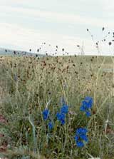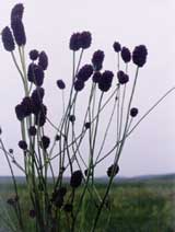地榆是高30-80厘米多年生草本植物,全株光滑无毛。根粗壮,圆柱形或纺锤形。茎直立,上部有分枝。穗状花序顶生,多花密集;花由顶端向下渐次开放;萼筒暗紫色,萼片紫色;花药黒紫色,花丝红色;花柱细长,紫色。瘦果宽卵形或椭圆形。花期7-8月,果期8-9月。这是一种中生植物,为林缘草甸的优势种,是森林草原地带起重要作用的杂类草。生态幅度较广,既可生长于落叶阔叶林中的林下,也可见于草原区的河滩草甸及草甸草原。